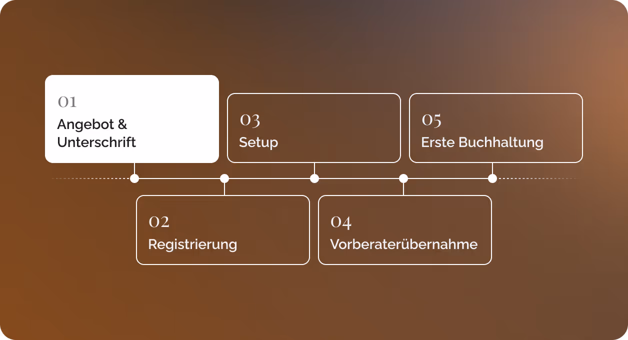 - Nahtloser Wechsel: Wir übernehmen die Kommunikation mit Ihrem bisherigen Steuerberater und kümmern uns um Kündigung, Datenübernahme und Vollmachten.